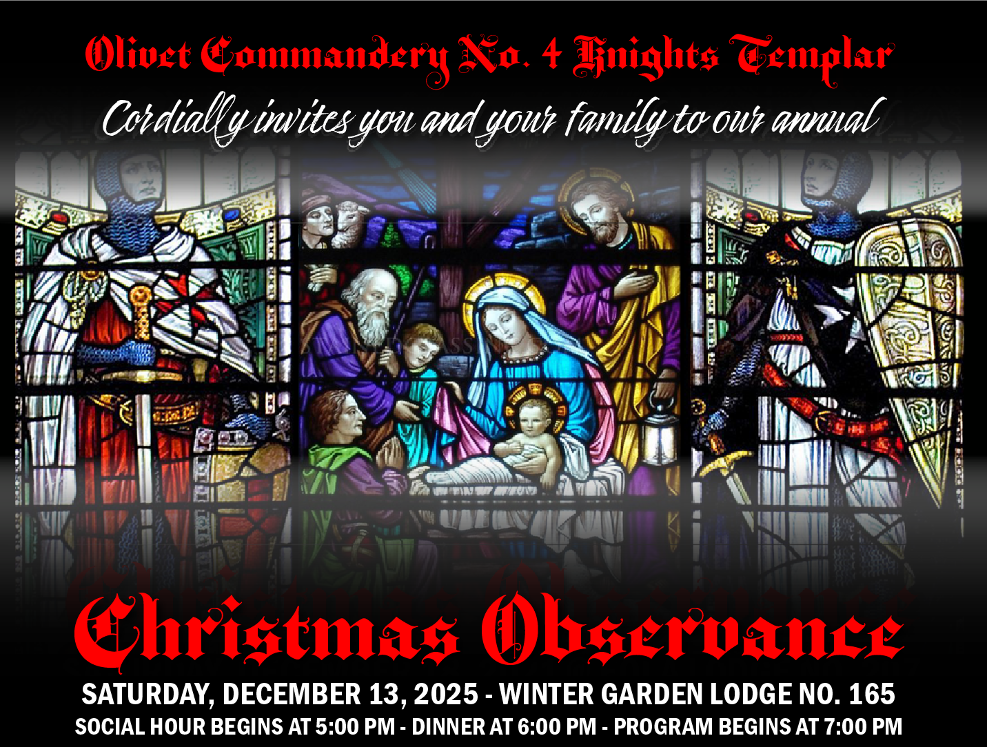 Olivet Commandery No. 4 Knights Templar cordially invites you and your family to our annual Christmas Observance.Location: [...]