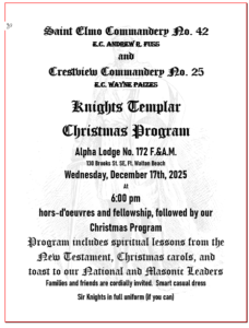 Saint Elmo and Crestview Commanderies Christmas Observance